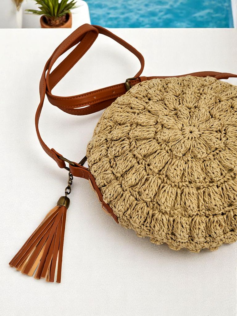 • Малка сламена чанта с едно отделение. Лека и стилна – перфектна за лятото, плажа и разходките. Естественият материал ѝ придава чар и летен характер. Побира всичките ви основни неща.