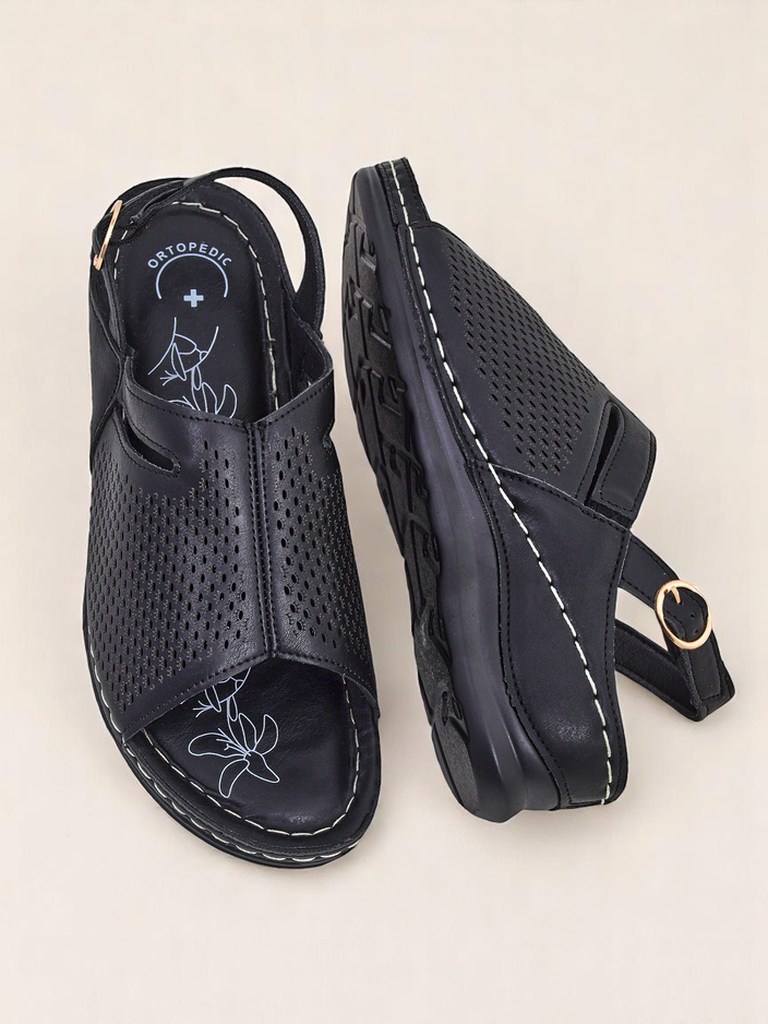 Обувките се предлагат с лека, еластична подметка, изработена от устойчив полиуретан, устойчив на износване. Благодарение на профилираната стелка и стабилния ток с височина около 3 см, сандалите Calcebianca поддържат здравето на краката и омекотяват всяка стъпка, което е особено важно за активните хора, които ценят комфорта през целия ден. Продуктът е обозначен с ORTOPEDIC, гарантиращ анатомична форма и минимизиране на риска от претоварване на ставите.