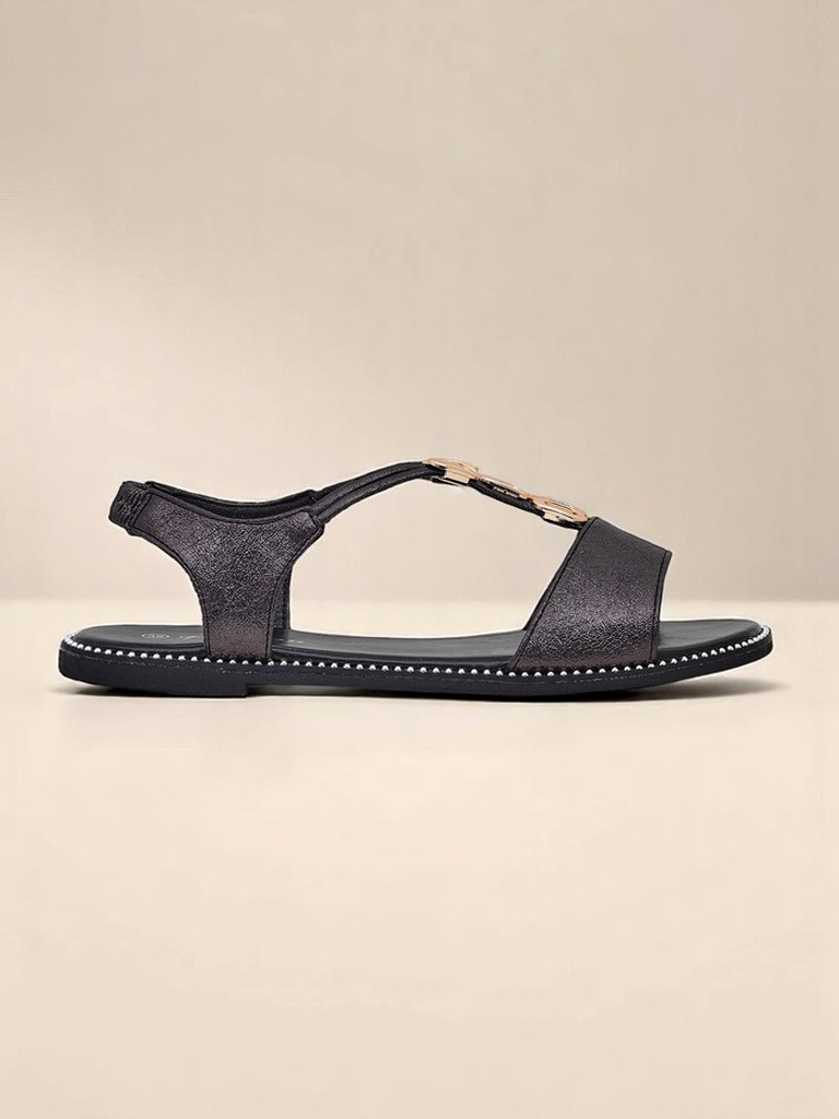 - Дамски сандали с отворени пръсти от еко кожа на равна подметка, украсени с елегантни каишки. Комфорт и шик за всеки ден и летни разходки.