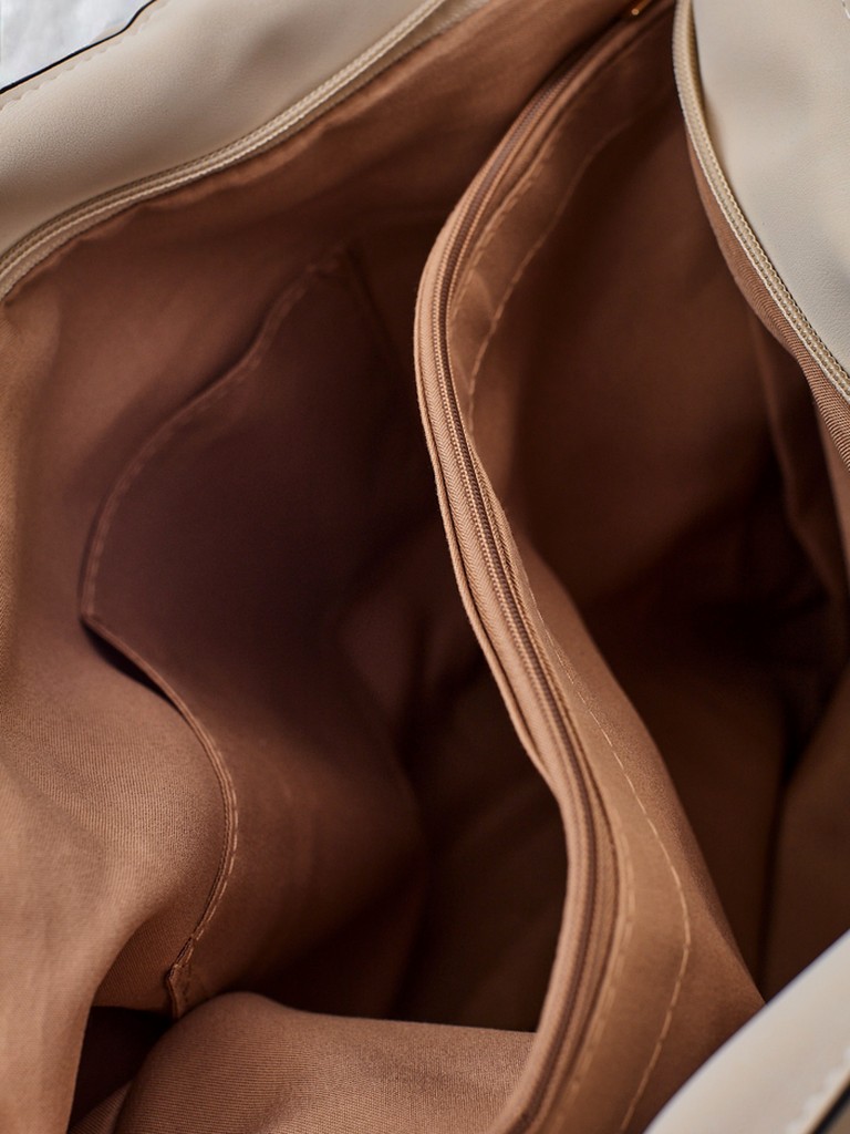 - Голяма, плетена чанта Elowen, изработена от матова еко кожа. Подвижната, регулируема дръжка и разделението на отделенията осигуряват функционалност, а вътрешните и външните джобове предлагат организация за ежедневна употреба.