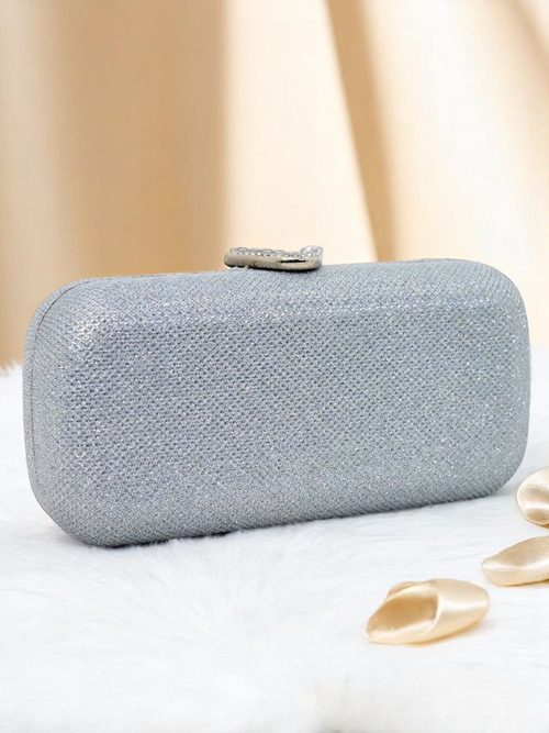- Чанта тип плик, изработена от еко кожа, покрита с блестящ плат с деликатна релефна щампа. Закопчава се с копче тип тик-так, с подвижна верижка—перфектна за елегантна вечер.