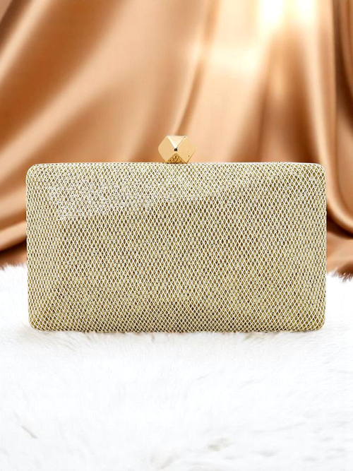 - Ослепителна клъч чанта, изработена от блестящ текстил. Закопчава се с копче, с подвижна дръжка. Перфектна за вечерни излизания — малка, ефектна и пълна с блясък!