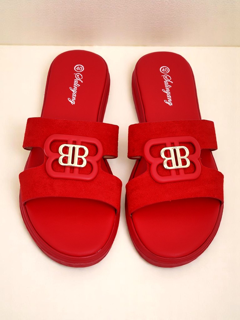 - Стилни, плоски чехли от еко велур с еко кожена стелка. Декорирани с елегантна пластмасова апликация на пръстите. Комфорт и шик, идеални за летните дни.