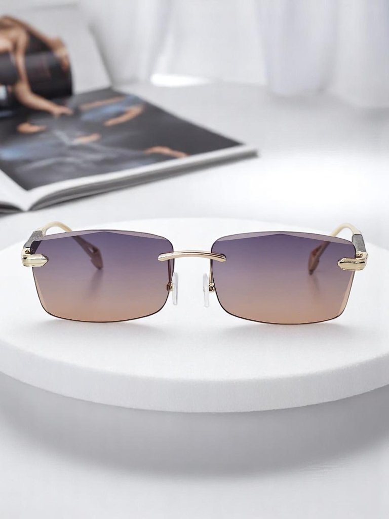- Малки, тесни слънчеви очила с правоъгълна форма и метална рамка. Винтидж стил в модерно издание – перфектни за фенове на смели ретро аксесоари.