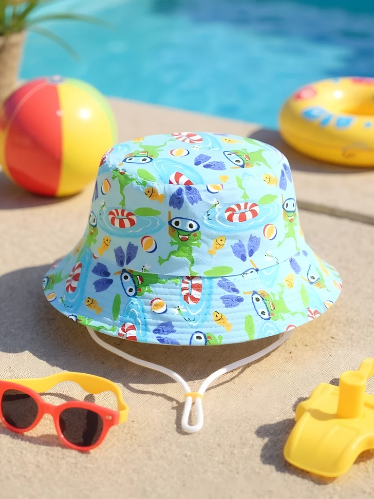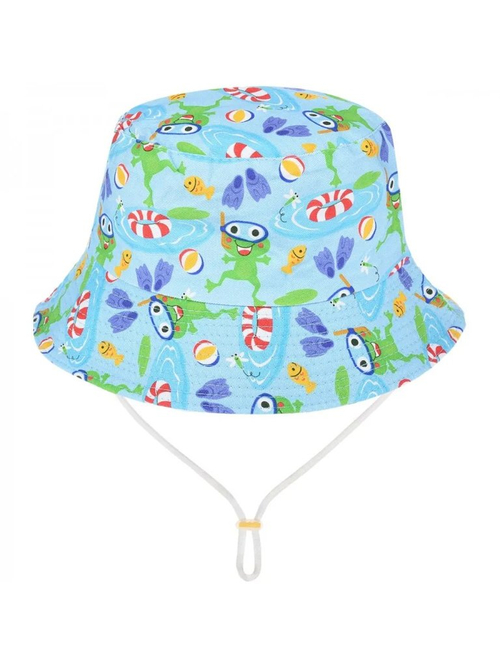 - Детска шапка тип кофа с цветен, жизнерадостен десен. Лека и удобна, идеална за летните дни. Предпазва от слънцето и придава енергия на всяко детско облекло!