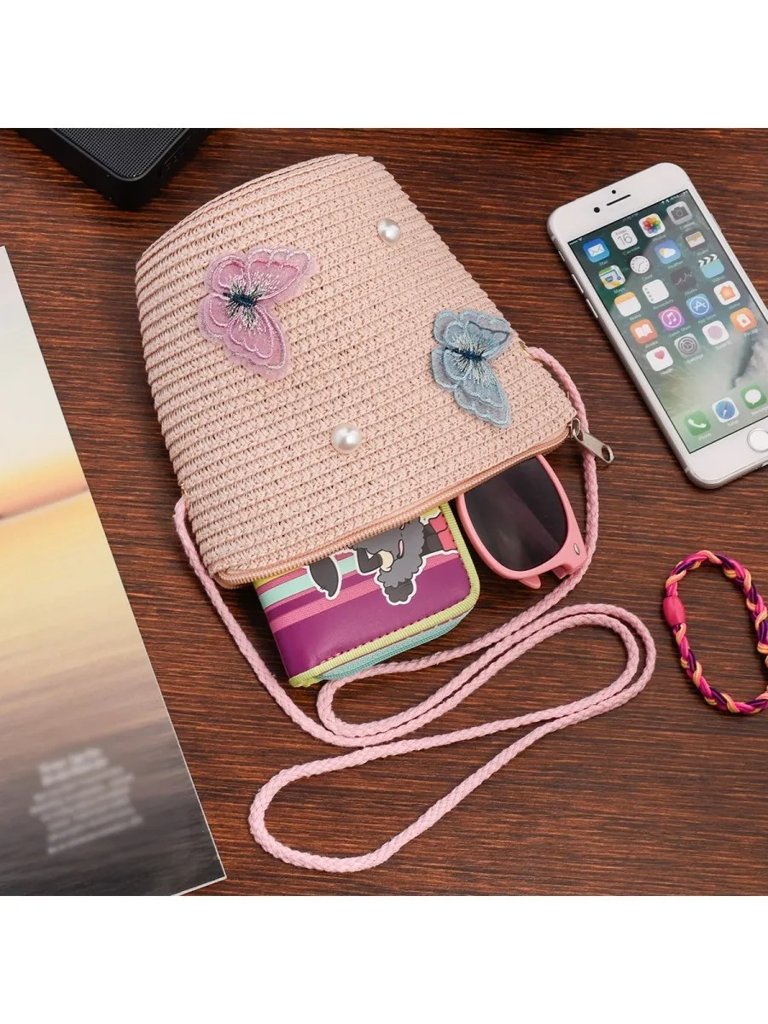 • Чанта за момичета, изработена от сламен материал, украсена с очарователни пеперуди. Лека и удобна – идеална за летни разходки, празнични излизания и малки съкровища. Стилен аксесоар, който всяка малка любителка на модата ще хареса.