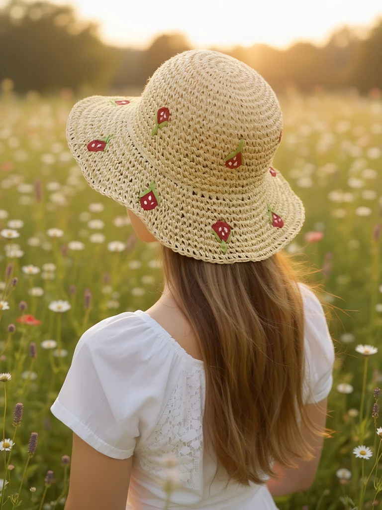 • Сламена шапка, украсена с очарователни апликации във формата на цветя. Лека и стилна, тя придава момичешки чар на летните тоалети и ефективно предпазва от слънцето.