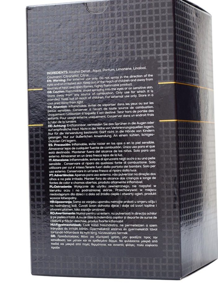 Съставки: Alcohol Denat., Aqua, Parfum, Limonene, Linalool, Coumarin, Citronellol, Citral.