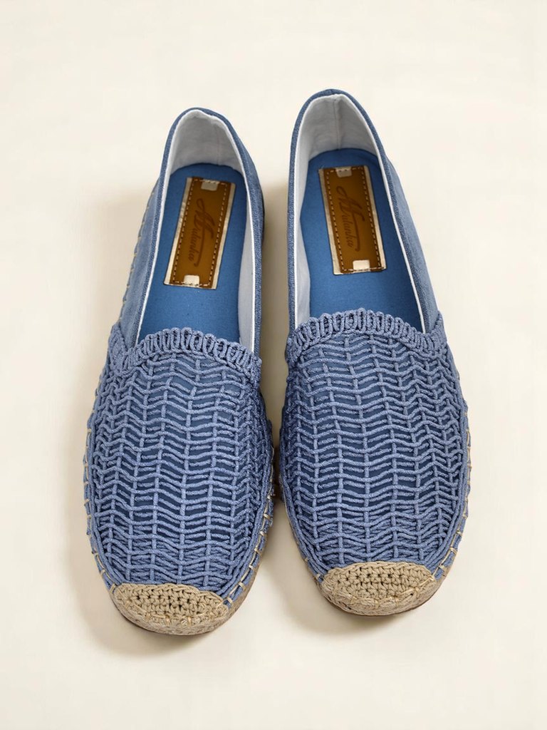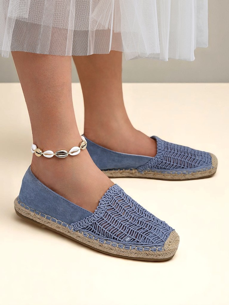 - Леки еспадрили от еко велур и плетена тъкан на бомбето. Ютеният шнур на подметката добавя чар. Удобни и стилни – перфектни за летни разходки.