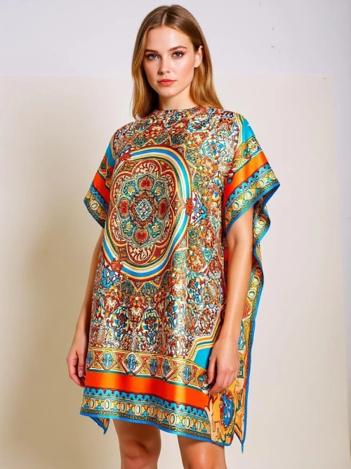 - Лека, шарена плажна туника тип парео е идеален избор за лятото. Ефирна и стилна, тя е перфектна за плажа или басейна. Подчертава женствената фигура, осигурявайки комфорт и модерен външен вид в горещите дни. Задължителен елемент за всеки ваканционен куфар!