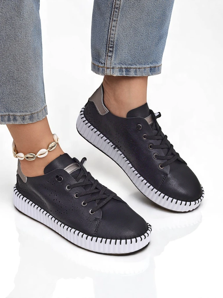 - Стилни дамски ажурни сникърси от еко кожа. Дишащата текстилна стелка и връзките осигуряват комфорт и прилягане. Идеални за пролетта и лятото!