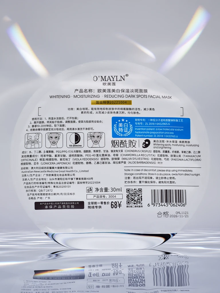 - Осветляващата и овлажняваща маска от плат интензивно хидратира кожата, изравнява тена и придава блясък. Идеална за уморена, безжизнена кожа – оставя кожата свежа, гладка и сияйна само след едно използване.
