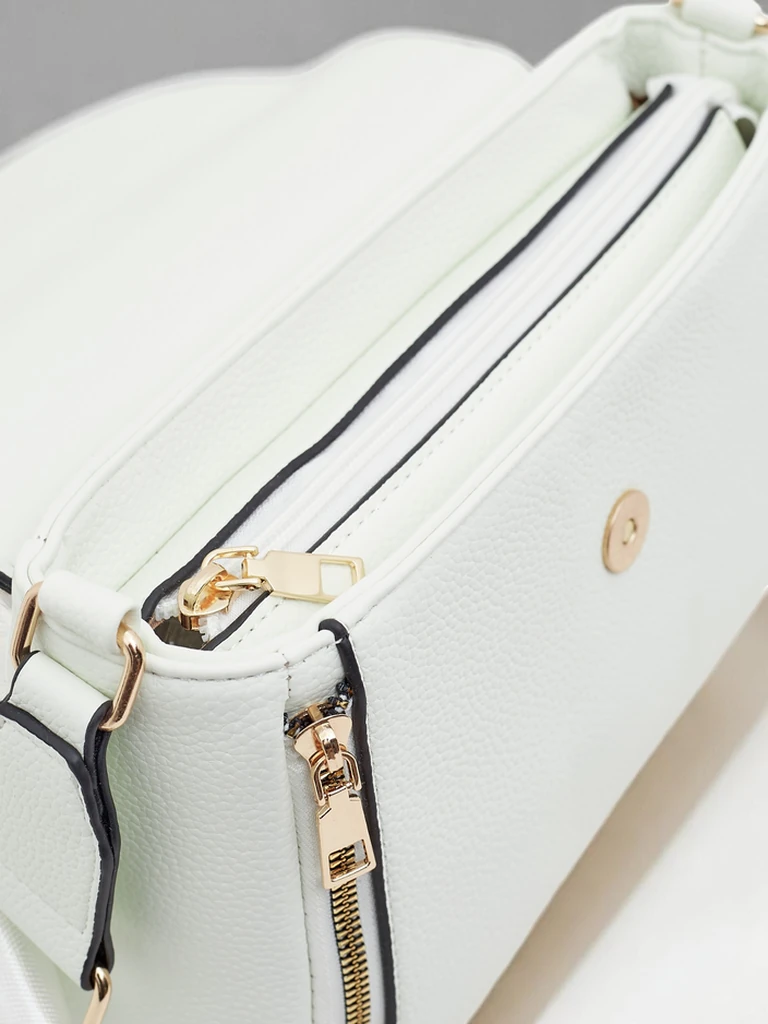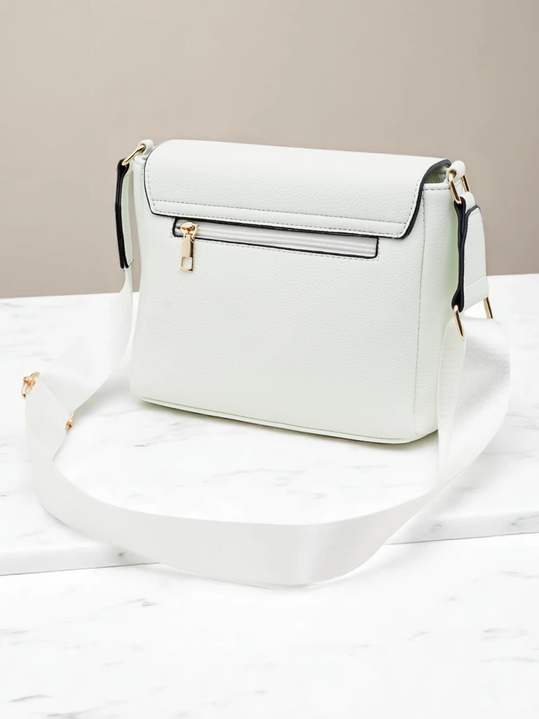 • Компактна чанта от еко кожа с едно отделение и два практични джоба. Регулируемата презрамка позволява да нагласите дължината, а декоративната предна част придава елегантност. Идеална за ежедневна употреба – съчетава стил и функционалност в лека форма.