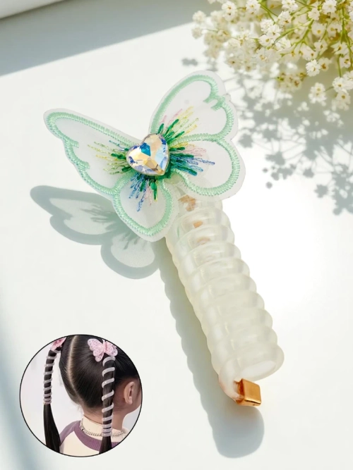 - Ластикът за коса Spring Butterfly е оформен като пружина с очарователна пеперуда. Нежно държи косата, без да я уврежда, като придава момичешко очарование и лекота на всяка прическа.