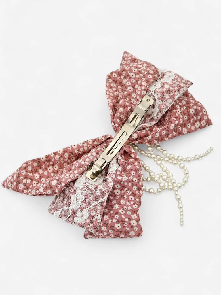 Bellafiora е елегантна фиба за коса, вдъхновена от непреходната средиземноморска естетика, която очарова със своя романтичен вид. Изработена е от висококачествен памучен плат с фин флорален мотив и деликатна дантела, която подчертава лекотата и момичешкия характер на продукта. Централната точка на декорацията са шнурове от дребни, синтетични перли, които придават на фибата уникален и луксозен вид. Материалите, използвани за производството, са подбрани по отношение на издръжливост и комфорт при носене – тъканта е сертифицирана по OEKO-TEX®, което гарантира липсата на вещества, вредни за кожата и косата. Механизмът на фибата е изработен от неръждаем метал, устойчив на износване и осигуряващ стабилно поддържане на прическата през целия ден.