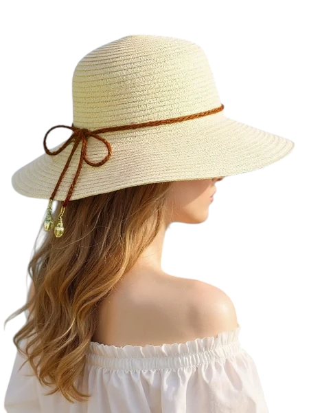 - Стилна дамска шапка, изработена от естествена слама, украсена с финa панделка. Перфектна за летни дни, осигурява защита от слънцето и добавя лекота и елегантност към всяка визия. Задължителен аксесоар за плажа, разходки или летни излизания.