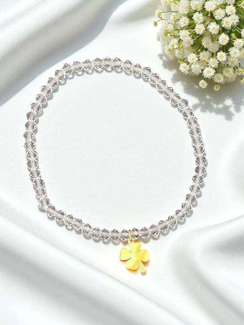- Гривната с мъниста и висулка детелина е стилен талисман за късмет. Нежна и елегантна, тя символизира просперитет, надежда и положителна енергия. Перфектна за ежедневна употреба като фин аксесоар с уникално послание.