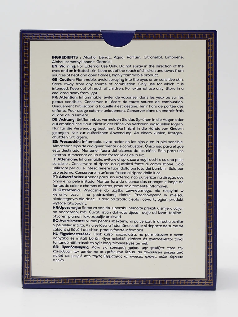 Aurelius Blu е уникален парфюм, затворен в дизайнерски флакон, наподобяващ елегантен куфар за пътуване, което напомня за италианското изкуство на пътуване и начина на живот la dolce vita. Продуктът е създаден от най-висококачествени съставки: Alcohol Denat., Aqua, Parfum, Citronellol, Limonene, Alpha-Isomethyl Ionone и Geraniol. Тези съставки осигуряват трайност, дълбочина и богатство на композицията – от свежи, цитрусови нотки до топли, леко дървесни акорди. Парфюмите се произвеждат с помощта на технология за екстракция на аромати, гарантираща максимално извличане на есенциите на ароматите. Композицията има висока концентрация на ароматни масла, типична за Eau de Parfum, поради което ароматът остава върху кожата в продължение на много часове. Флаконът е изработен от дебело, синьо стъкло с висока устойчивост на повреди и UV радиация. Aurelius Blu е идеален за всеки сезон. Най-добре подчертава стила и индивидуалността, предлагайки усещане за свежест и лукс, както за всеки ден, така и за специални поводи. Ароматът дава усещане за увереност, вдъхновявайки за нови приключения.**Предложения за стилизиране:**1. Градски стил – комбинирайте с елегантна риза, дънки и модерни маратонки – идеален избор за среща в кафене.2. Вечерна елегантност – съчетайте с класически костюм или малка черна рокля; парфюмът ще подчертае шика и изискаността на стилизацията.3. Небрежен уикенд - облечете широк пуловер, леки панталони и маратонки – Aurelius Blu ще добави свежест и характер.**Грижа и съхранение:** Съхранявайте продукта на хладно и сухо място, далеч от слънчева светлина и източници на топлина. Избягвайте контакт с очите и раздразнена кожа. Не използвайте в близост до открит огън – продуктът е запалим. Подробности относно състава и предупрежденията са посочени на опаковката.**Модни тенденции:** Aurelius Blu се вписва в актуалните тенденции за комбиниране на класика с модерност и персонализиране на ароматни продукти. Дизайнерските флакони, вдъхновени от пътувания до емблематични места, са силен акцент на сезона. Изберете този аромат, ако цените стила, изразителността и индивидуализма.