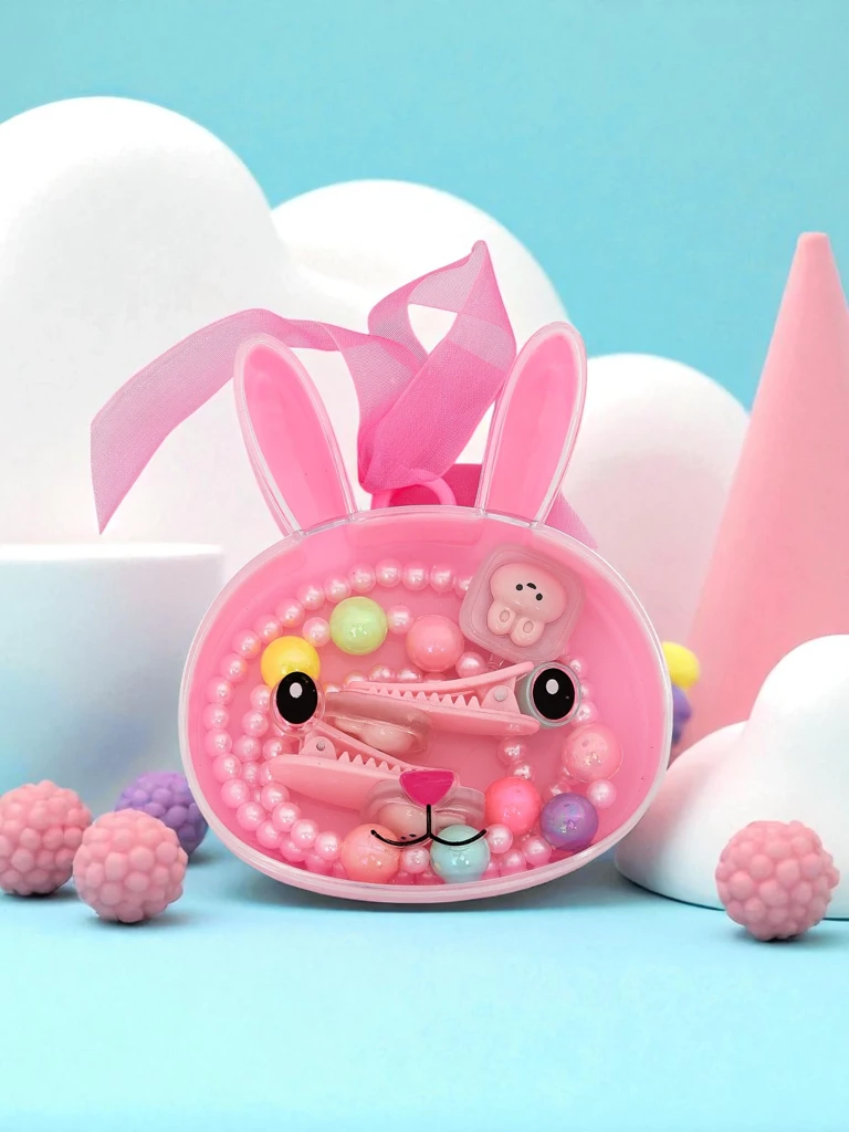 - Комплект бижута за деца Bambina Dolce – очарователна чантичка зайче, мъниста, клипсове, идеален подарък за момиче.