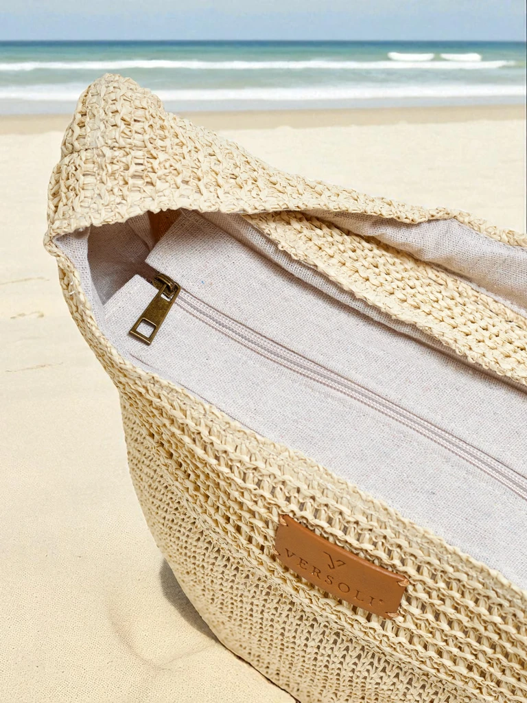 - Стилна сламена чанта с едно отделение и джоб, закопчаваща се с цип. Лека и просторна, идеална за летните дни. Прекрасна за небрежни тоалети, осигурява комфорт и организация, като запазва модерен, ваканционен чар. Перфектна за плажа и градски разходки.