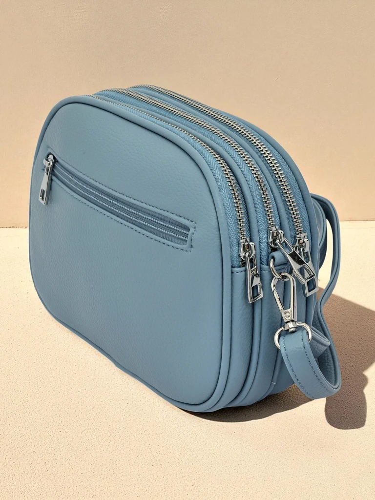 - Малка дамска чанта от еко кожа с 3 практични отделения. Оборудвана с подвижна, регулируема дръжка – може да се носи на рамо или като клатч. Компактна, но същевременно просторна – идеална за ежедневието и излизане.