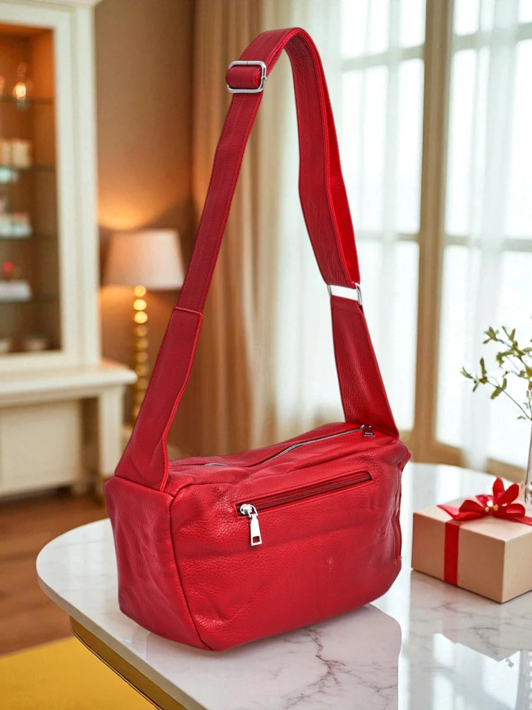 - Стилна чанта от еко кожа с 1 отделение и 3 джоба. Регулируемата презрамка осигурява комфорт, а класическият дизайн подхожда на всяка визия - идеална за всеки ден и за специални поводи.