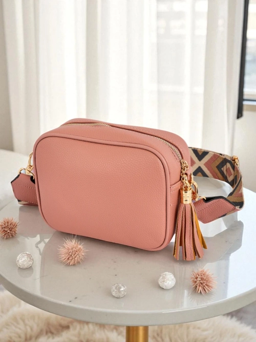 - Стилна малка чанта от еко кожа с цветна каишка и очарователен пискюл. 1 отделение, 2 джобчета, регулируема и откачаща се каишка. Идеална за всеки ден и за излизане - компактна и побира всичко важно.