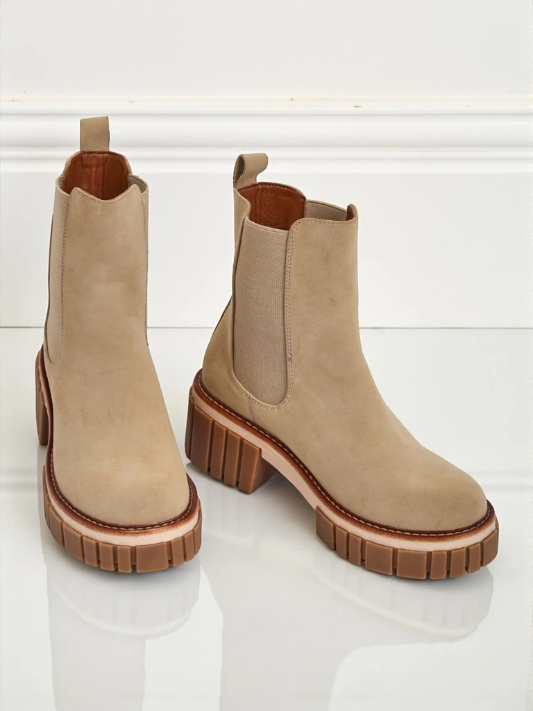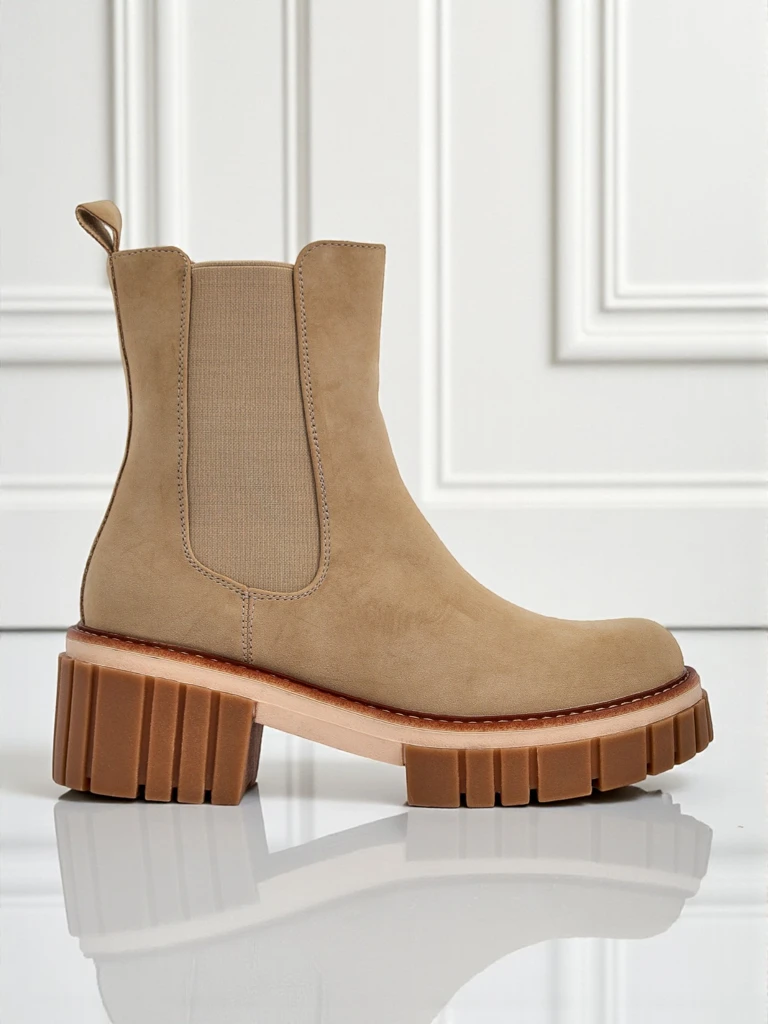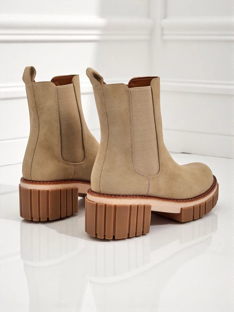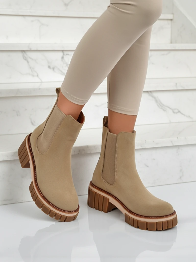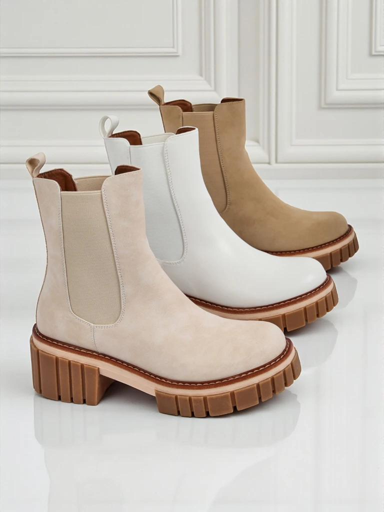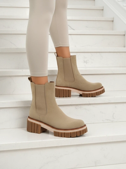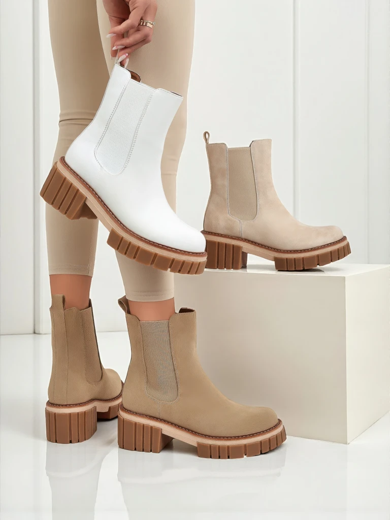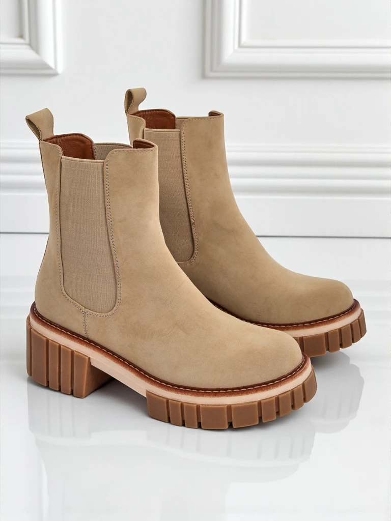 Бежовите боти Callista са уникална комбинация от класика и модерност в женствен стил. Изработени от висококачествена екологична велурена кожа, те предлагат издръжливост и приятен на допир материал, който отлично имитира естествен велур, като същевременно е лесен за поддръжка и щадящ околната среда. Производственият процес на тази кожа включва внимателна обработка на микрофибър, придаваща ефект на дълбоко матово покритие и осигуряваща издръжливост дори при ежедневна употреба. Нещо повече, материалът има сертификат за качество OEKO-TEX, потвърждаващ липсата на вредни вещества. Ботите Callista са в модерен, светъл бежов нюанс. Токчето им придава модерен характер, като същевременно гарантира стабилност и комфорт при ходене, а кръглият нос осигурява удобство дори през целия ден. Меката подплата и еластичните странични вложки улесняват обуването и се адаптират идеално към формата на стъпалото. Най-важните предимства: - Изключителен комфорт благодарение на стабилния ток тип "токче", - Универсален дизайн – подходящ както за ежедневни, така и за по-елегантни стилове, - Устойчивост на замърсяване и лесно почистване (достатъчна е мека четка или влажна кърпа), - Екологичен материал, защитаващ околната среда. Идеи за стилове: 1. За ежедневно градско излъчване ги носете с прилепнали дънки, бяла риза и свободно палто, 2. За среща или вечерно излизане комбинирайте ботите с разкроена миди рокля и дълга жилетка, 3. Открийте елегантността, като ги съчетаете с костюм в неутрални цветове – това е модерен акцент към офис облеклото! Поддръжка и съхранение: Ботите се почистват с деликатна четка, предназначена за велур, или с влажна кърпа без препарати. Пазете от влага и интензивна слънчева светлина – най-добре е да ги съхранявате на проветриво място върху оригиналните стелки или в кутия. В момента масивните подметки и изразителните токчета са една от най-важните есенни тенденции, а класическият бежов цвят прави тези боти универсално предложение за всяка жена, която цени удобството, стила и актуалните модни тенденции.