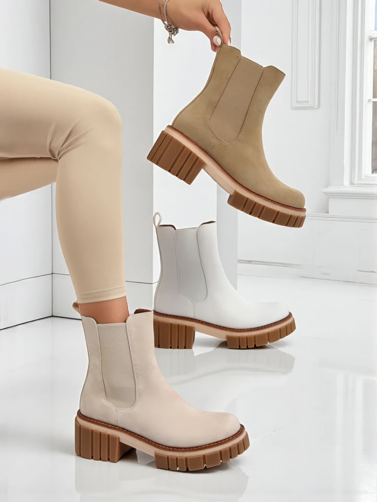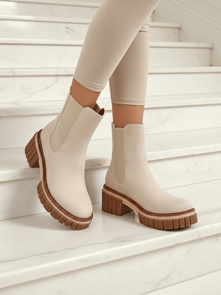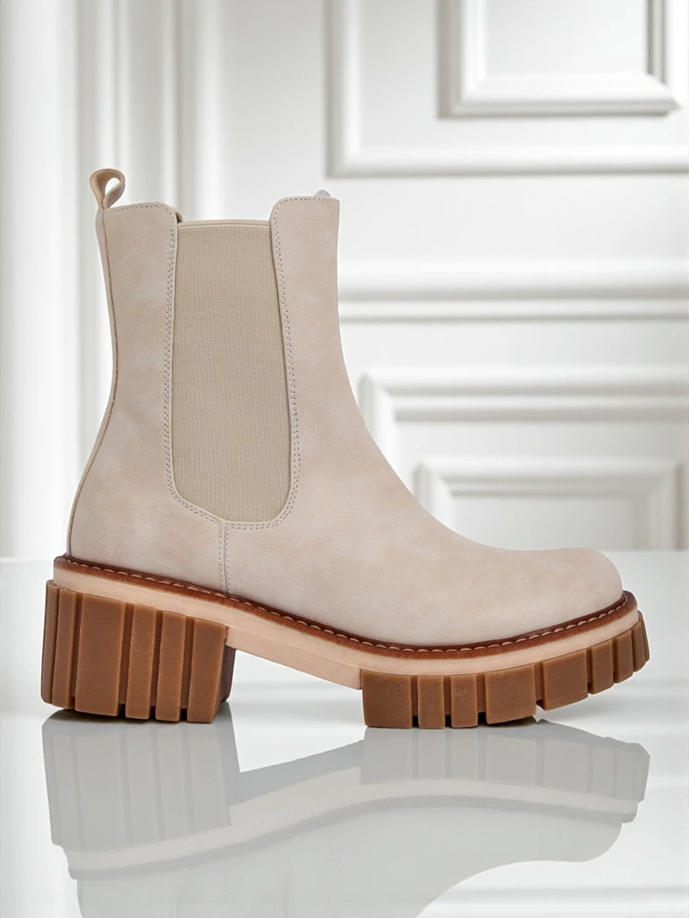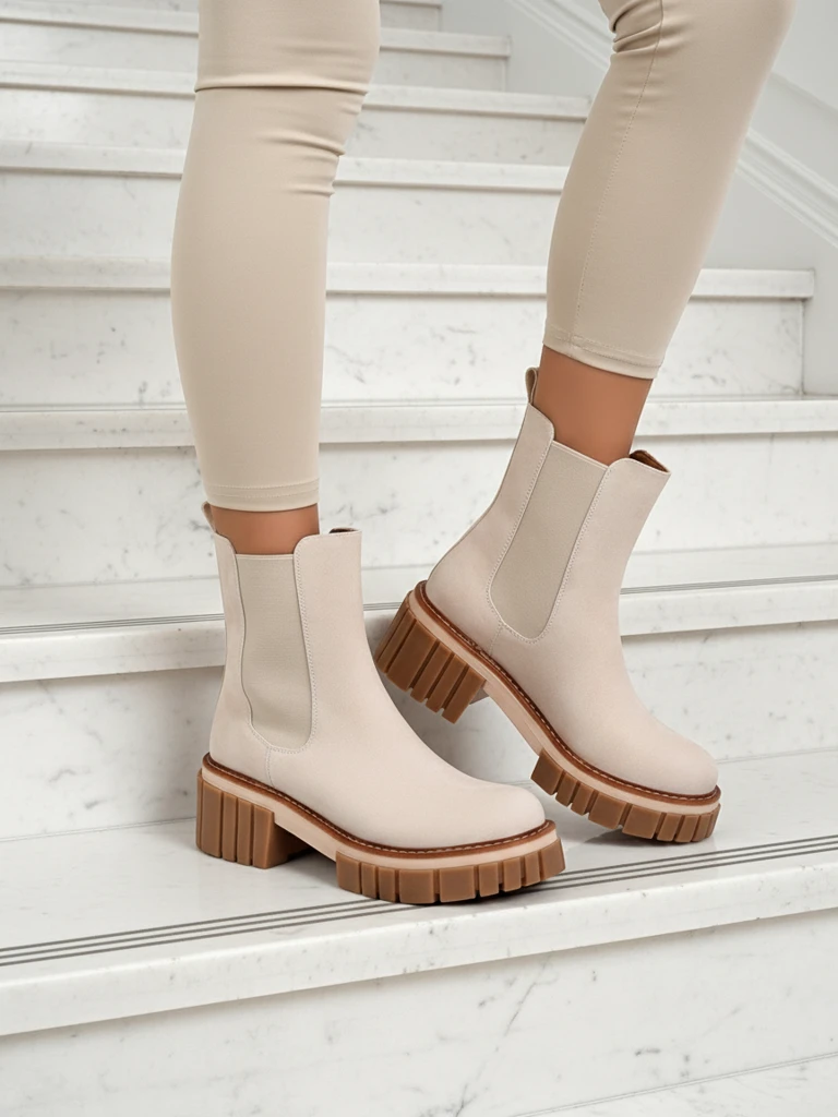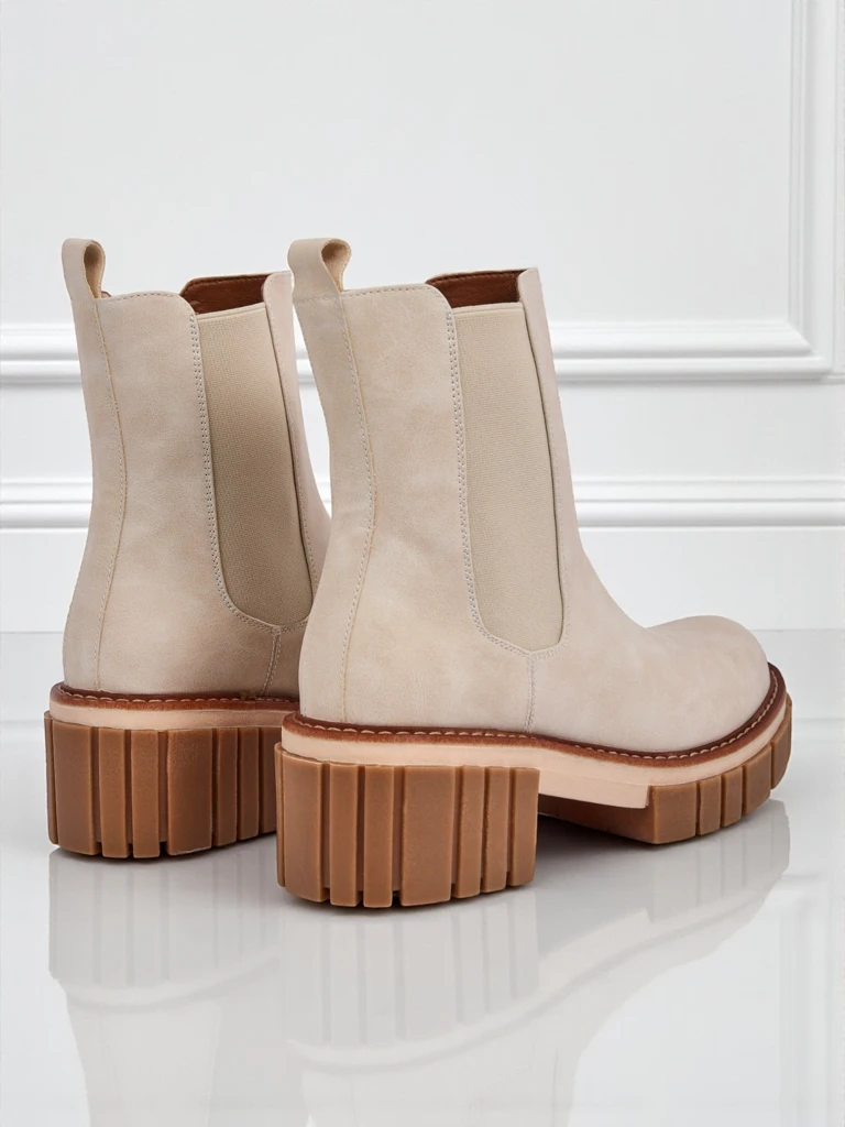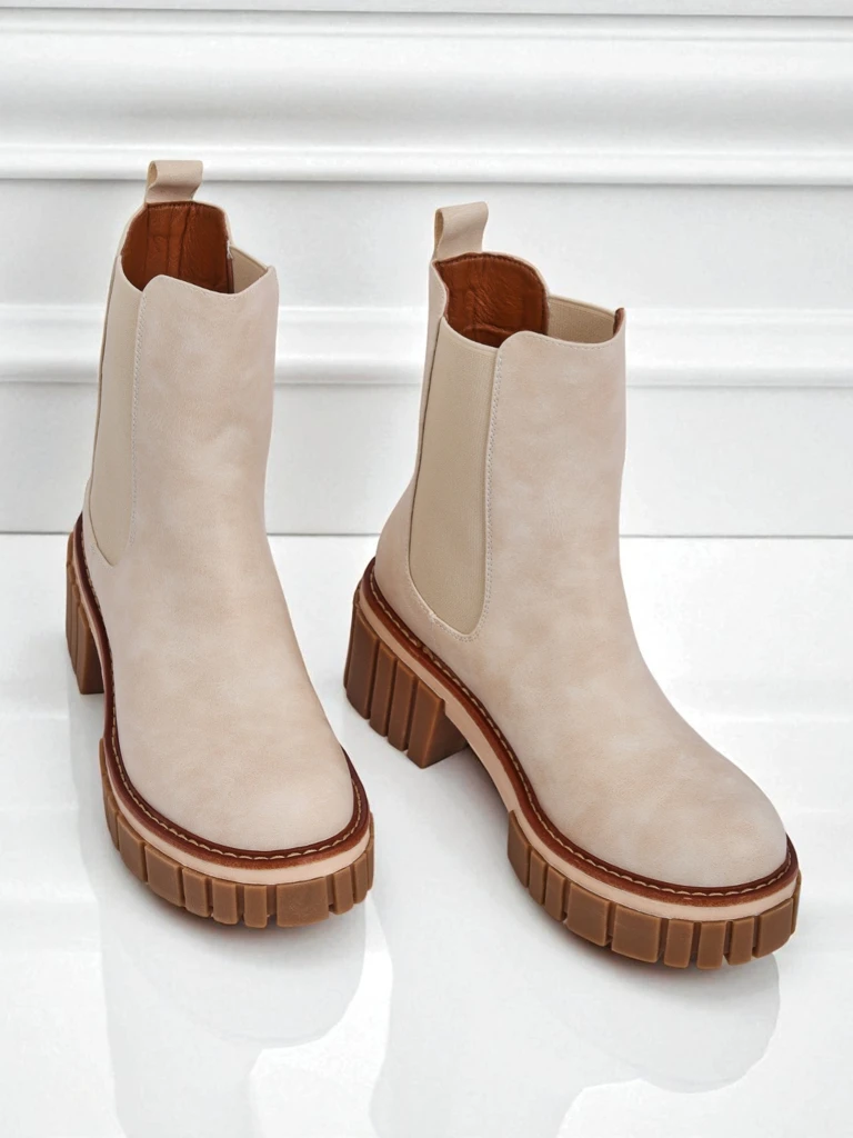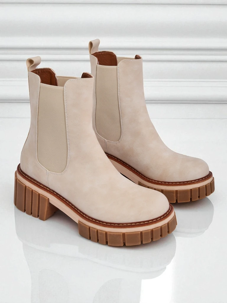 Бежовите боти Callista са изключителна комбинация от класика и модерност в женствен стил. Изработени от висококачествена екологична велурена кожа, те предлагат издръжливост и приятен на допир материал, който отлично имитира естествен велур, като същевременно е лесен за поддръжка и щадящ околната среда. Производственият процес на тази кожа включва внимателна обработка на микрофибър, придаваща ефект на дълбоко матово покритие и осигуряваща издръжливост дори при ежедневна употреба. Нещо повече, материалът има сертификат за качество OEKO-TEX, потвърждаващ липсата на вредни вещества. Ботите Callista са в модерен, светъл бежов нюанс. Токчето им придава модерен характер, като същевременно гарантира стабилност и комфорт при ходене, а кръглият нос осигурява удобство дори през целия ден. Меката подплата и еластичните странични вложки улесняват обуването и се адаптират идеално към формата на крака. Най-важните предимства: - Изключителен комфорт благодарение на стабилния ток тип "токче", - Универсален дизайн – подходящ както за ежедневни, така и за по-елегантни стилове, - Устойчивост на замърсяване и лесно почистване (достатъчна е мека четка или влажна кърпа), - Екологичен материал, защитаващ околната среда. Идеи за стилове: 1. За ежедневно градско излъчване ги носете с прилепнали дънки, бяла риза и свободно палто, 2. За среща или вечерно излизане комбинирайте ботите с разкроена миди рокля и дълга жилетка, 3. Открийте елегантността, като ги съчетаете с костюм в неутрални цветове – това е модерен акцент към офис облеклото! Поддръжка и съхранение: Ботите се почистват с деликатна четка, предназначена за велур, или с влажна кърпа без препарати. Пазете от влага и интензивна слънчева светлина – най-добре е да ги съхранявате на проветриво място върху оригиналните стелки или в кутия. В момента масивните подметки и изразителните токчета са една от най-важните есенни тенденции, а класическият бежов цвят прави тези боти универсално предложение за всяка жена, която цени удобството, стила и актуалните модни тенденции.