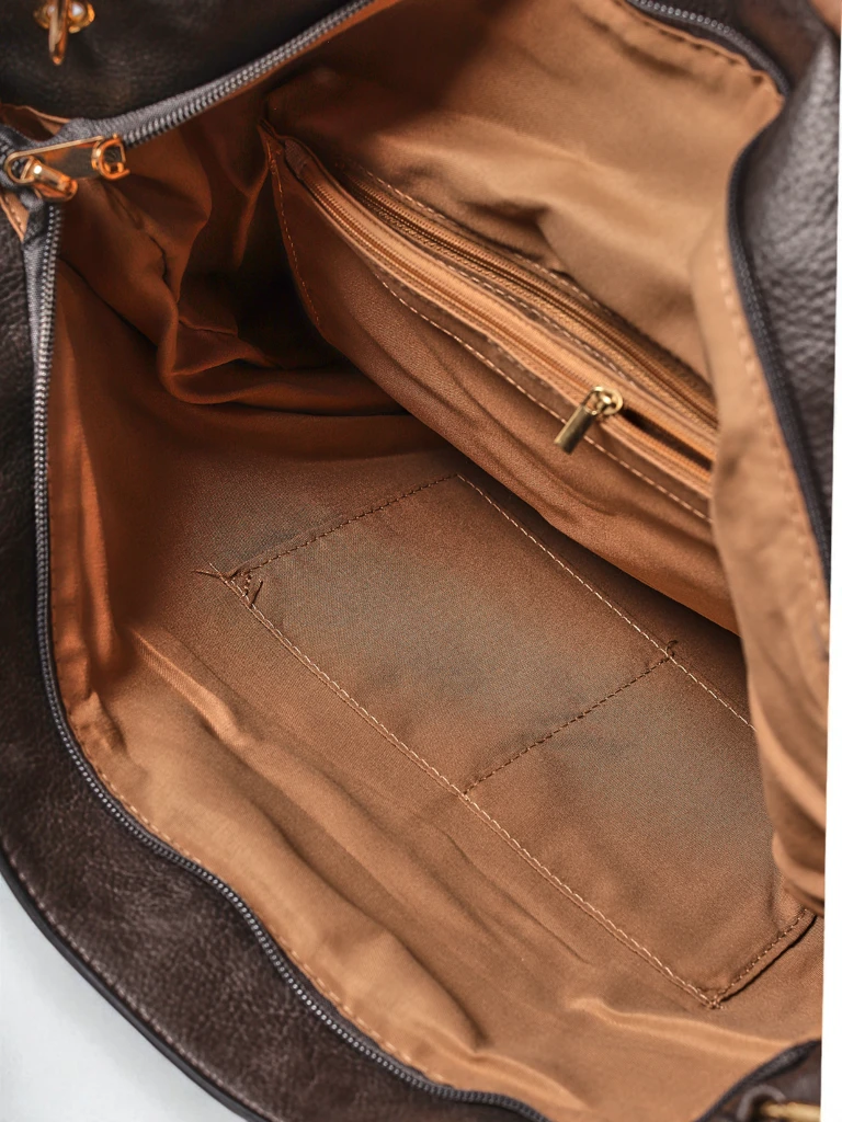 - Стилна чанта тип shopper от еко кожа с 1 отделение, 4 вътрешни джоба и 1 външен. Декоративните странични джобчета с цип и ресни добавят характер. С подвижна, регулируема презрамка – идеална за всеки ден.