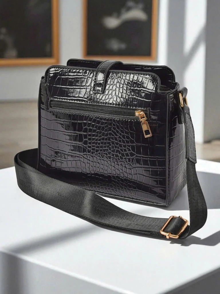 - Лакирана чанта от еко кожа с елегантен релеф. 1 просторно отделение и подвижна, регулируема презрамка осигуряват удобство при носене. Стилен избор за всеки ден и за специални поводи. Класа, която привлича погледите.