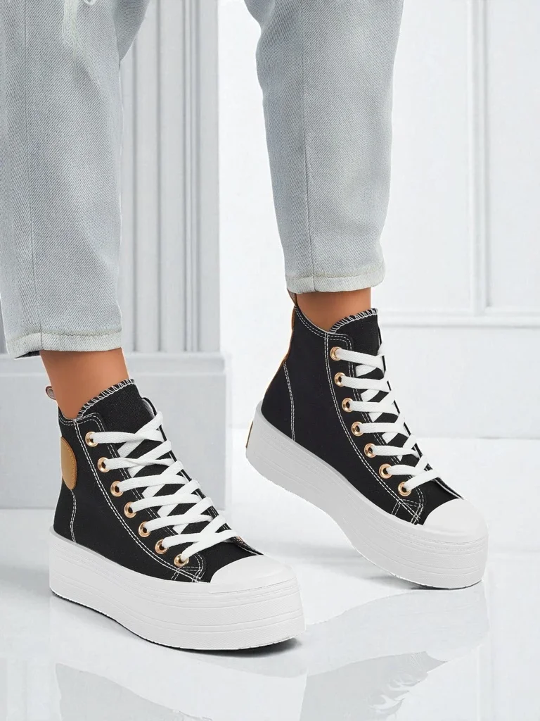 Дамски маратонки Callisto Nero на платформа, плат, черни, лято/есен