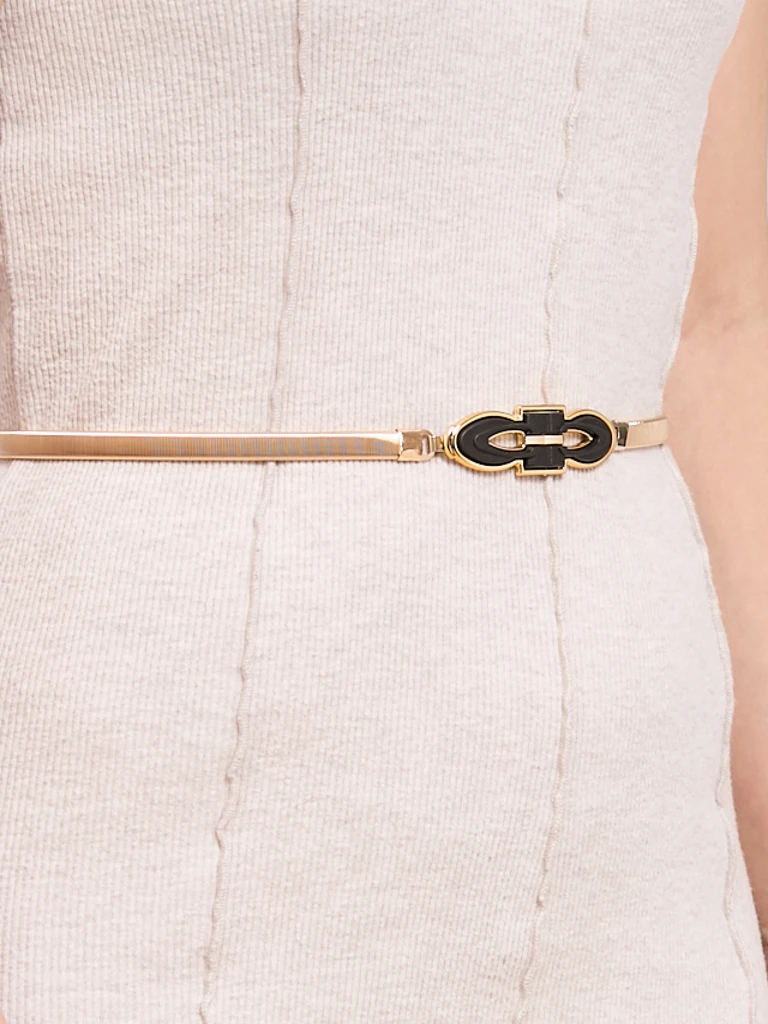 - Модерен дамски колан тип змийска верижка, изработен от метал и закопчаващ се с кукичка. Много разтеглив и еластичен, с ширина 1 см. Ще бъде атрактивно допълнение към много вечерни визии.