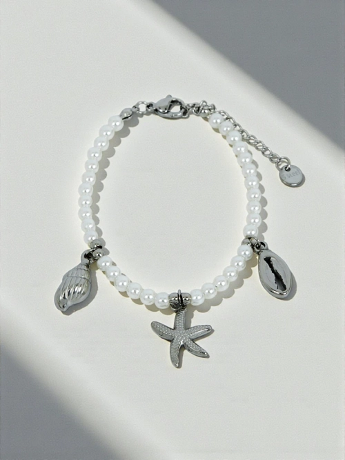 - Сребърна гривна с морски висулки. Модерен аксесоар, вдъхновен от морския стил.