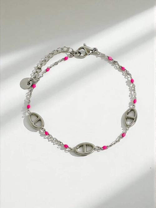 Гривна Callista Elegantia със звена и розови мъниста, хирургическа стомана