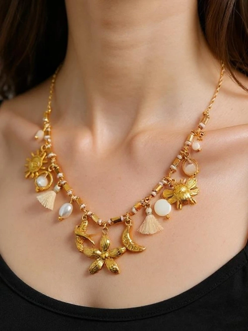 Колие Aurora Floralis - Златни талисмани и перли Eleganza