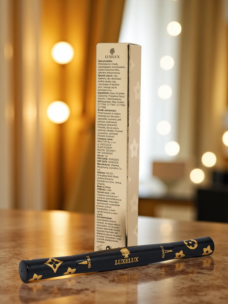 - Luxelux Eyeliner и молив за вежди 2в1 е практична комбинация от два продукта в един. Прецизният eyeliner подчертава погледа, а моливът за вежди запълва и моделира, придавайки им идеален вид. Идеален за ежедневен грим.