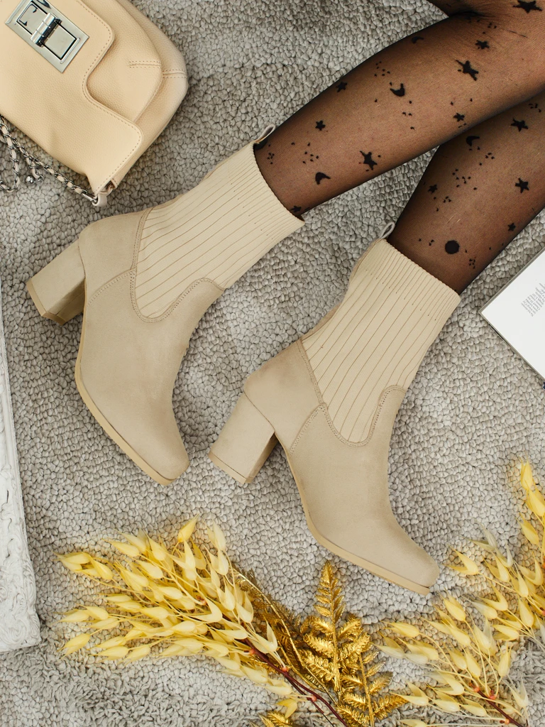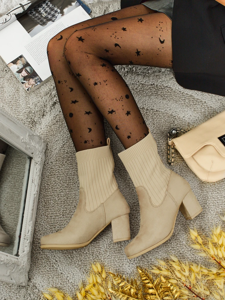 Дамски еко велурени боти на ток с вложка, наподобяваща чорап LumenThorn