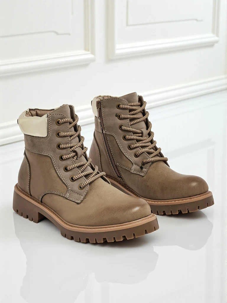 - Дамски трекинг боти с връзки и цип отстрани. Изработени от екологична кожа. Вътрешността на обувките е с топла подплата от пух. Идеални за зимния сезон!
