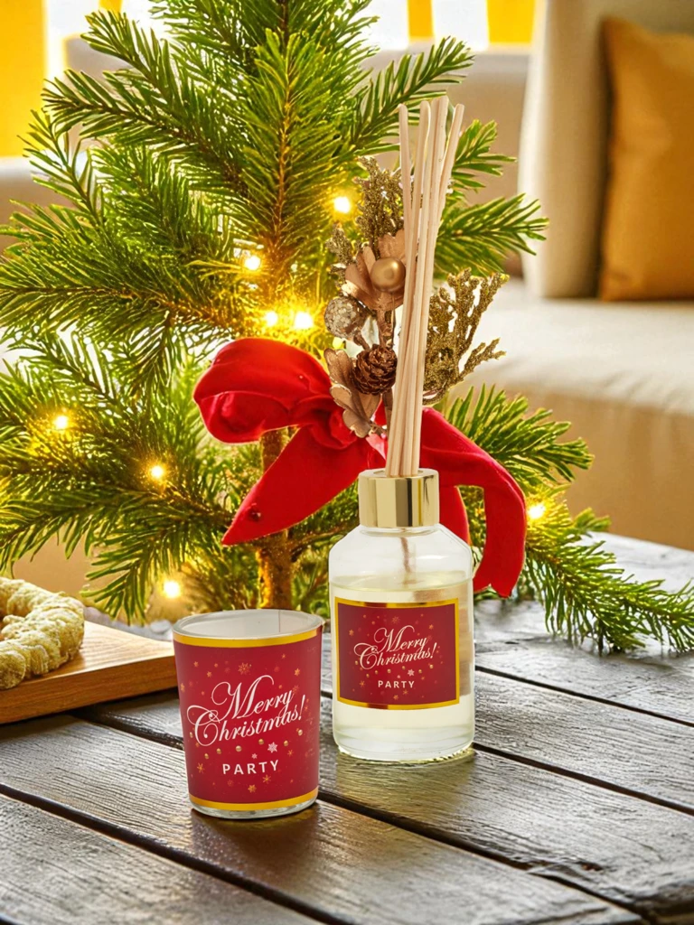 Комплект: Коледни ароматни пръчици и свещ Merry Christmas