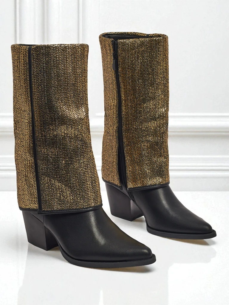 Дамски боти от еко кожа на ток с декоративна горна част Virelia