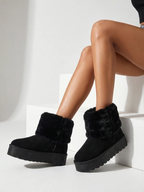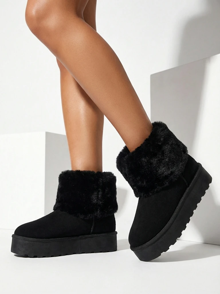 - Страхотни дамски зимни ботуши тип снегоходки на по-дебела платформа. Горната част е изработена от екологична велурена кожа, а вътрешността е изолирана с пухкава подплата. Идеална основа за зимата!