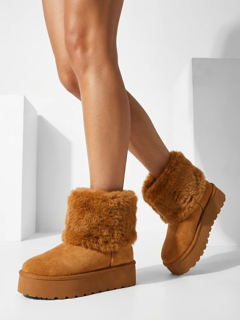 - Страхотни дамски зимни ботуши тип снегоходки на по-дебела платформа. Горната част е изработена от екологична велурена кожа, а вътрешността е изолирана с пухкава подплата. Идеална основа за зимата!