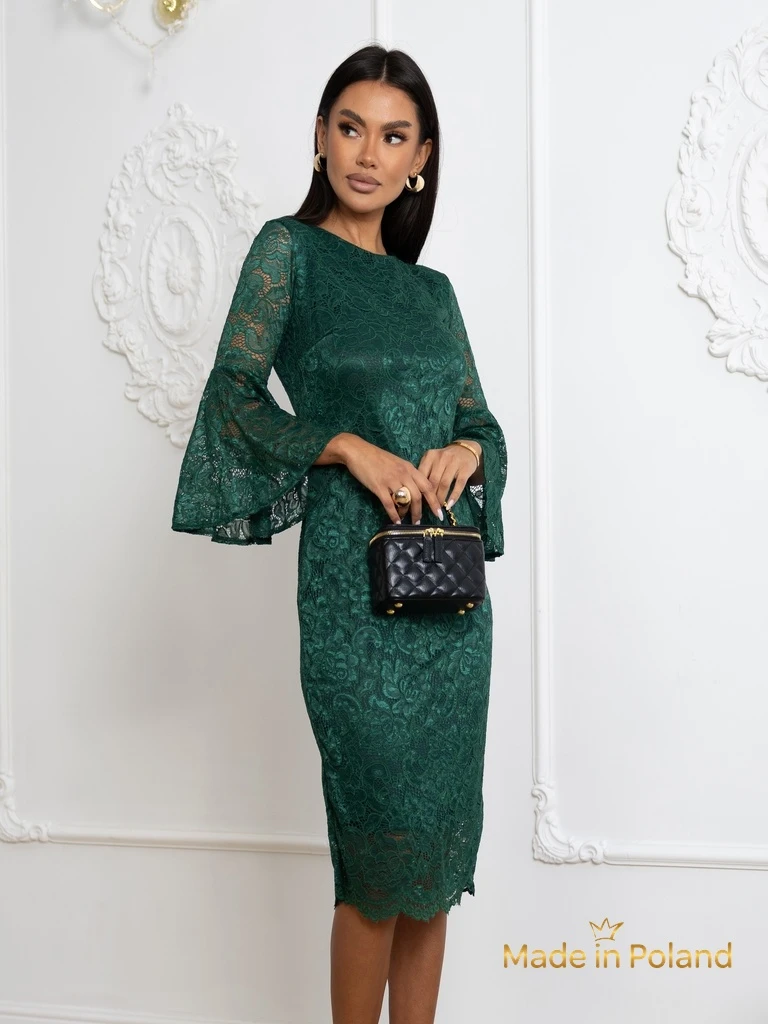 Дамска миди рокля с дантела и широки ръкави Holly Wow