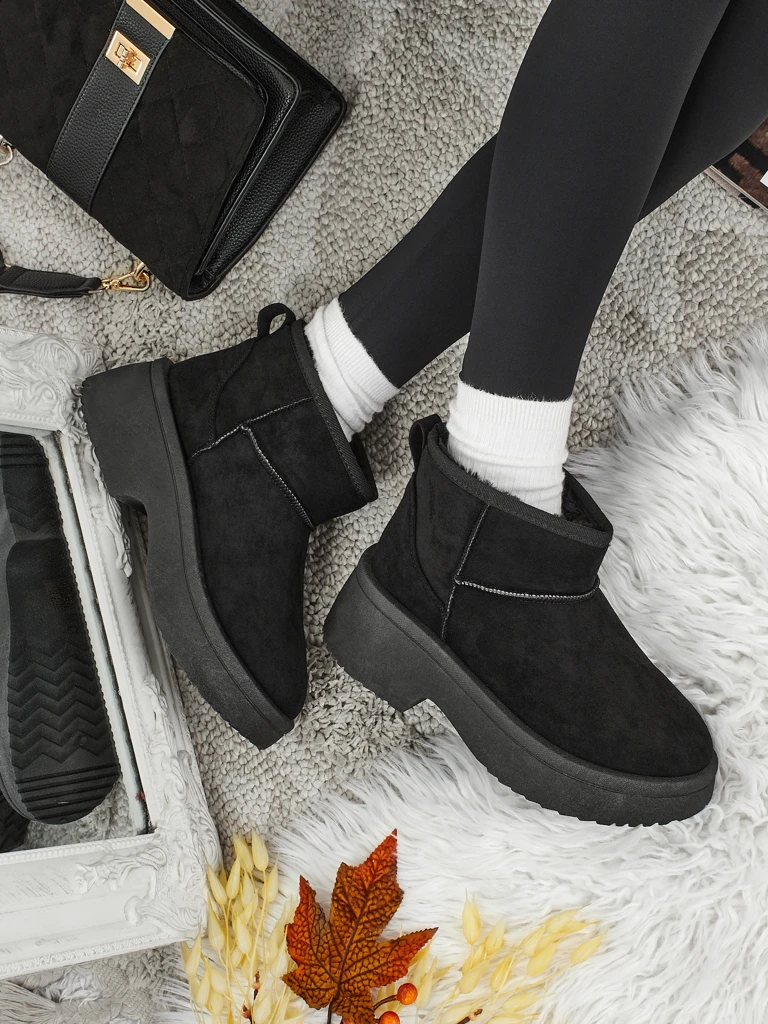 - Страхотни дамски зимни боти тип сноубутс на по-дебела платформа. Горната част е изработена от екологична велурена кожа, вътрешността е изолирана с пухкава подплата. Идеална основа за зимата!