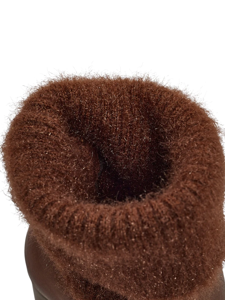 - Удобни боти до глезена на ток, изработени от еко кожа и вложка от плетиво. Моделът е тип slip-on. Моделът е леко подплатен с пухкава подплата. Перфектен избор за есента!