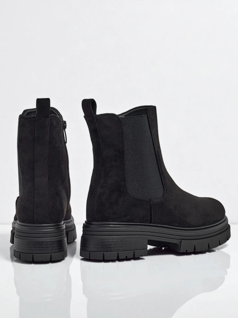 - Красиви и класически боти в стил Челси на по-дебела подметка, изработени от екологична велурена кожа. Вътрешна изолация под формата на деликатна подплата. Супер основа за есенни стилове!