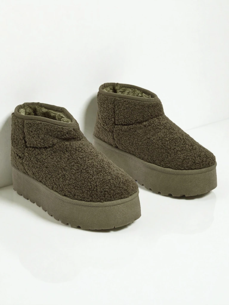 • Страхотни дамски зимни боти тип сноубутс на по-дебела платформа. Горната част е изработена от плат, наподобяващ кожух, а вътрешността е изолирана с пухкава подплата. Идеална основа за зимата!