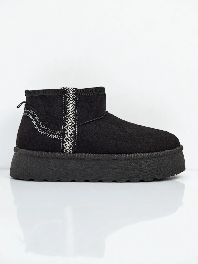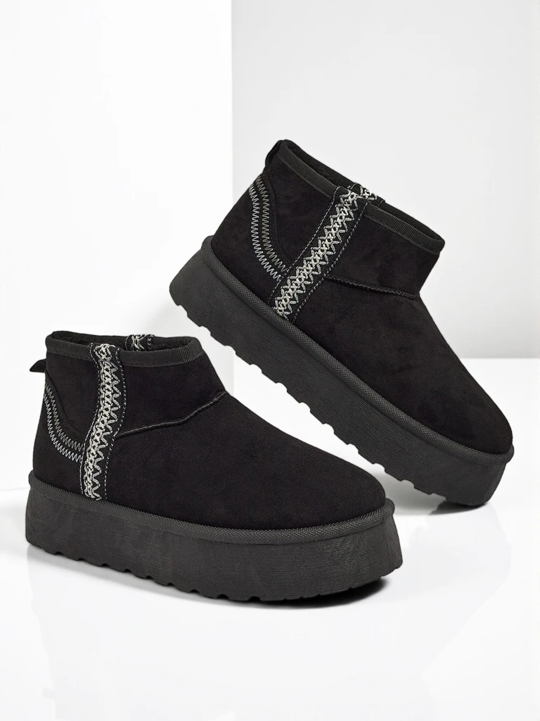 - Страхотни дамски зимни боти тип снегоходки на по-дебела платформа. Горната част е изработена от екологична велурена кожа, а вътрешността е изолирана с пухкава подплата. Идеална основа за зимата!