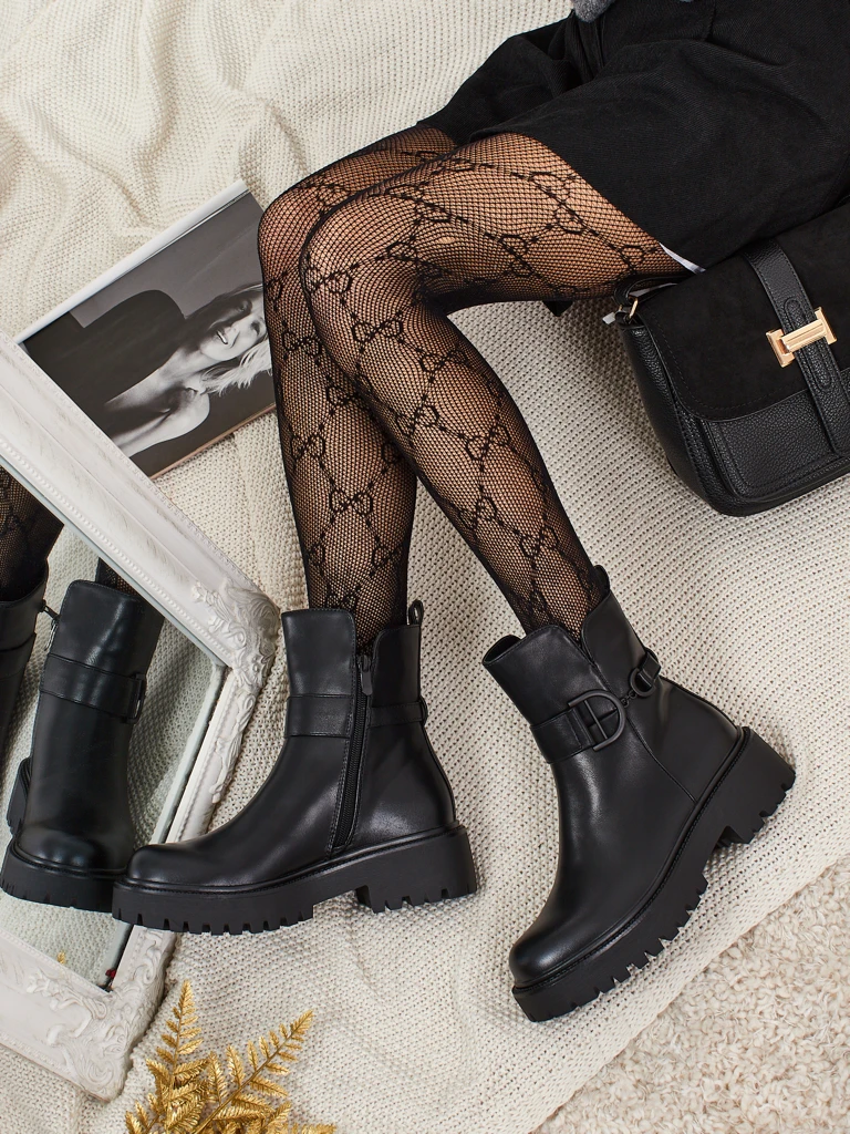 - Дамски боти от еко кожа, с цип и кръгъл нос, допълнително затопляне под формата на козина – модерност, удобство и стил в едно. Декорирани с елемент с катарама.